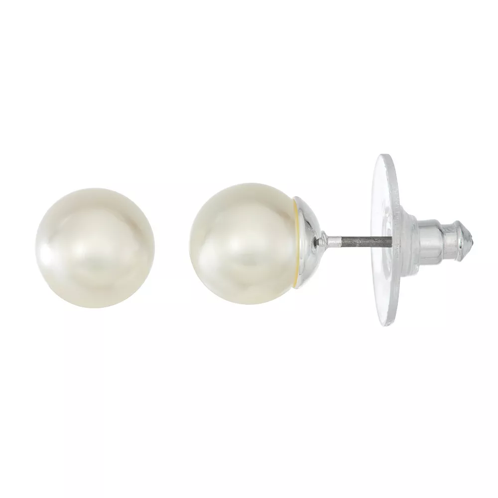 Add these classic simulated pearl studs to dress up any look.