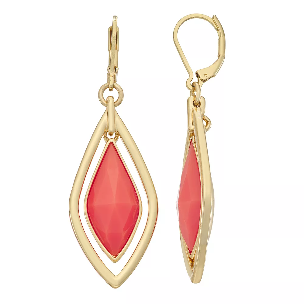 Add a splash of color to your wardrobe with these coral and gold tone orbital drop earrings from Napier.