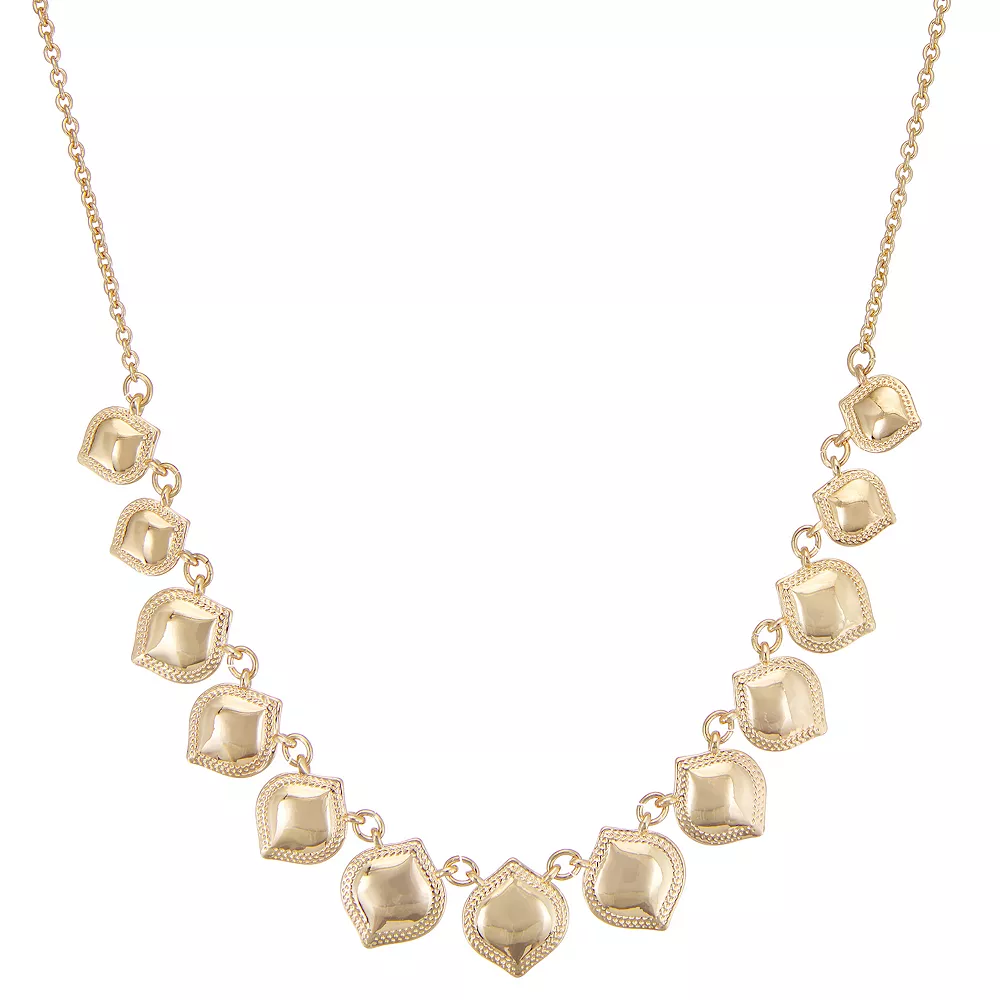 Add a floral touch to your jewelry collection with this gold tone petal collar necklace from Napier.