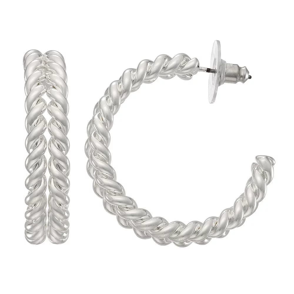 Add a touch of interest to any everyday ensemble with these silver tone twisted double-row C-hoop earrings from Napier.