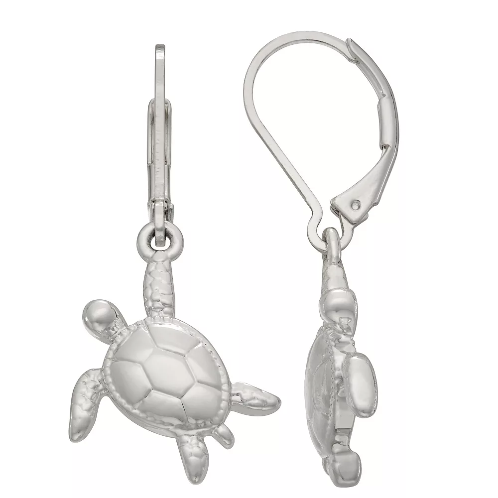 Add a sweetly nautical touch to your jewelry collection with these silver tone sea turtle drop earrings from Napier.