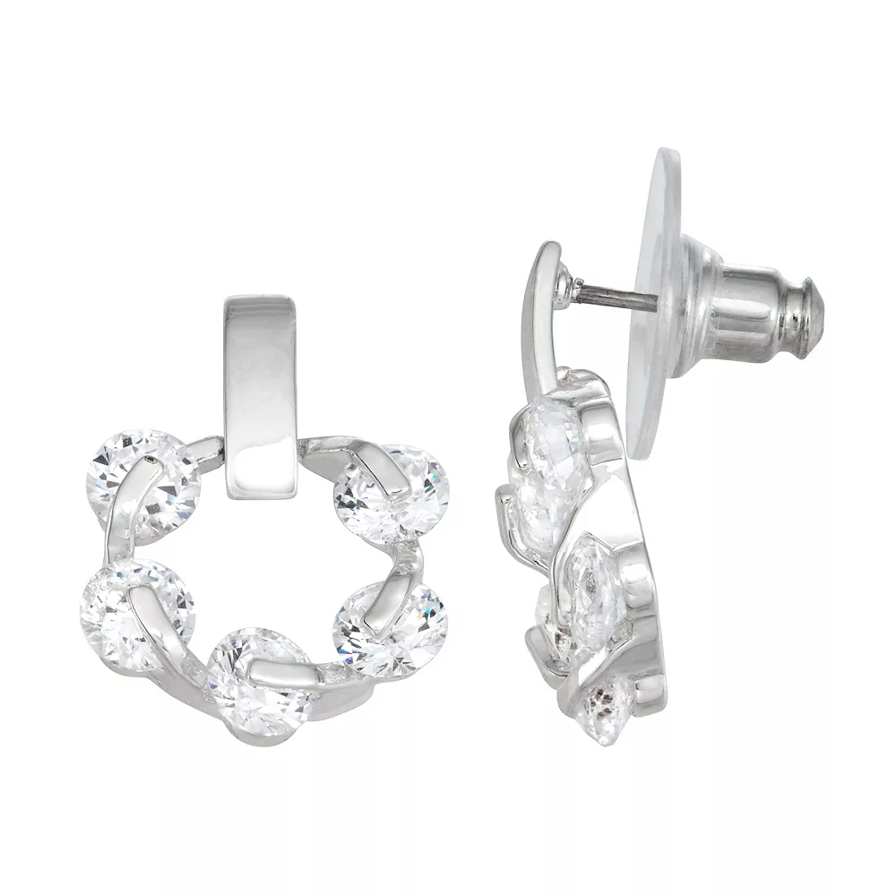This pair of silver tone and simulated crystal doorknocker earrings from Napier are sure to become a favorite pair in your jewelry collection.