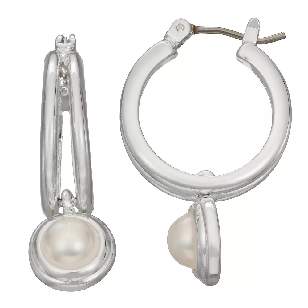 Finish off your look with these simulated pearl-accented silver tone drop hoop earrings from Napier.