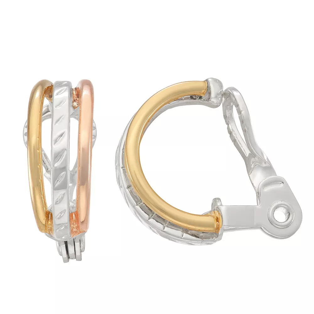 Give your look a stylish, modern vibe with these Napier tri-tone clip-on earrings.